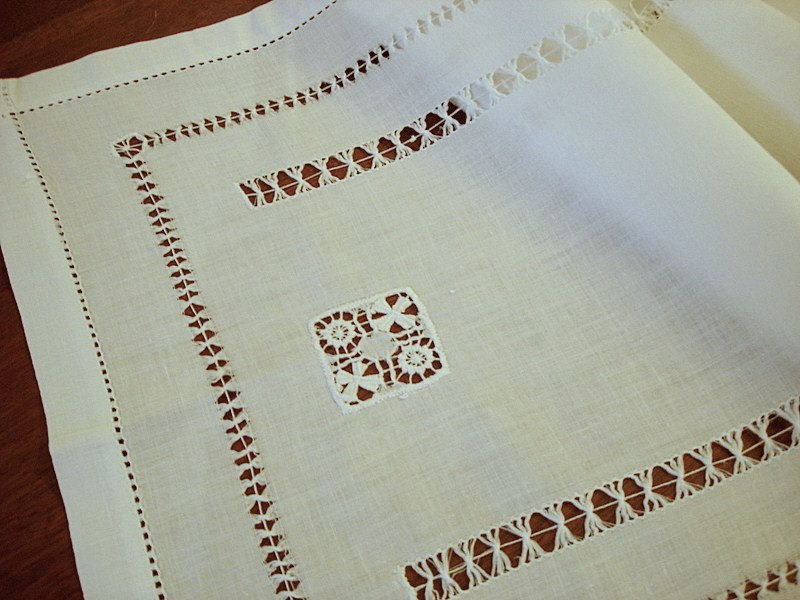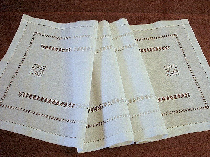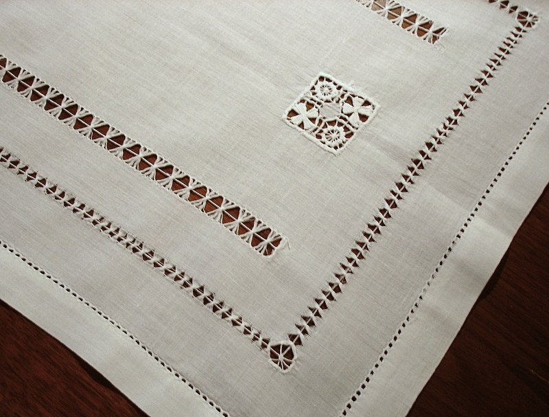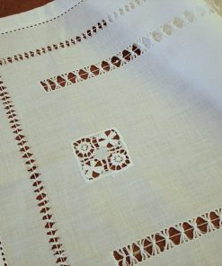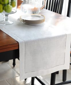 Hand hemstitch white linen table runner